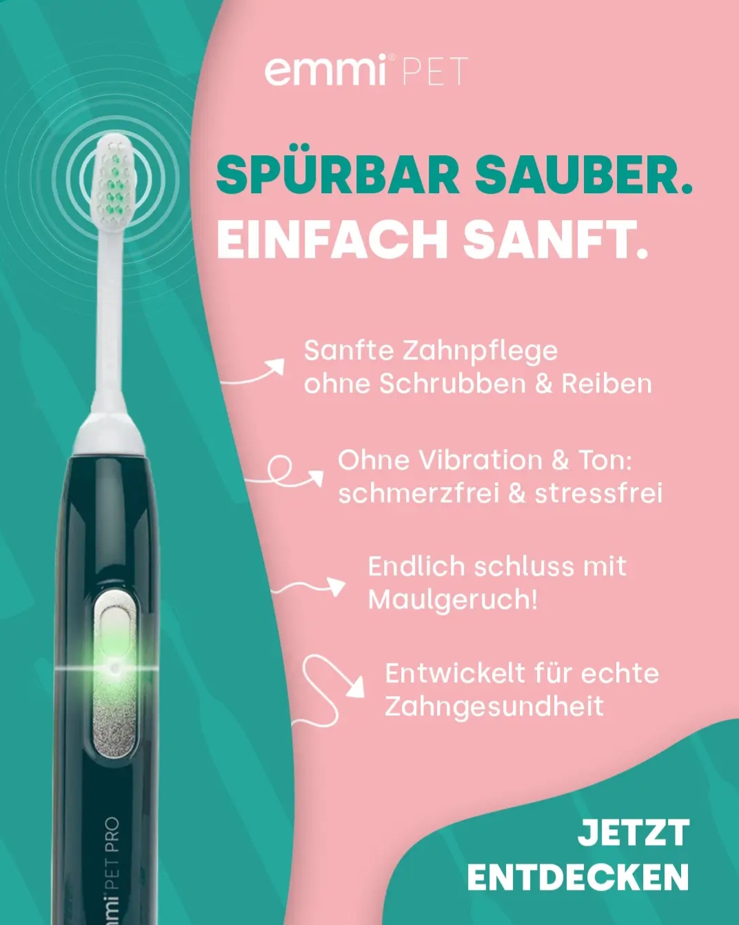 Nur wenn sich dein Hund wohlfühlt und alles unauffällig wirkt, wird vorsichtig mit der Zahnreinigung begonnen